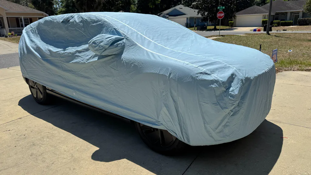 Our car cover features premium waterproof fabric with an extra coating. It shields your vehicle from heavy rain and moisture..